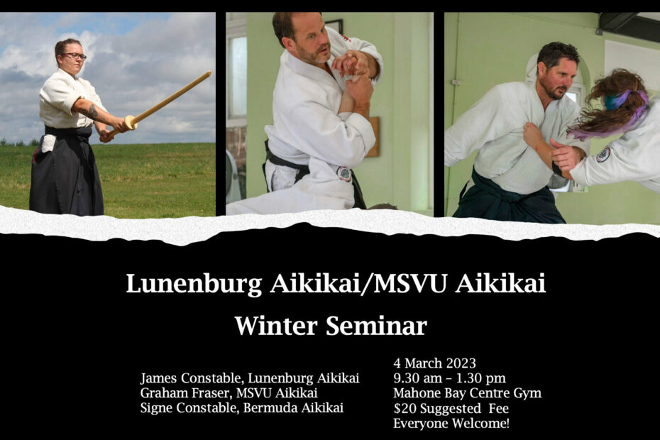Come join us on March 4th for a seminar with James Constable (Bermuda Aikikai), Graham Fraser (MSVU Aikikai), and Signe Constable (Bermuda Aikikai). 9:30AM-1:00PM at… Read More »Lunenburg Aikikai – MSVU Aikikai Winter Seminar